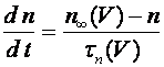 -ворот для калиевых каналов, т.е. как вероятность активации последних. Напомним, что по гипотезе А. Ходжкина и А. Хаксли инактивационные ворота для калиевых каналов отсутствуют. Авторы опытным путем подобрали линейное обыкновенное дифференциальное уравнение для