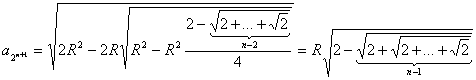 При n=2 правильный 2n – угольник есть квадрат; его сторона