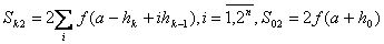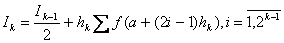 Таким образом, метод двойного просчета, использованный необходимое число раз, позволяет вычислить интеграл с заданной степенью точности. Выбор необходимого числа разбиений осуществляется автоматически. Можно при этом использовать многократное обращение к подпрограммам соответствующих методов интегрирования, не изменяя алгоритмов этих методов. Однако для методов, использующих равноотносящие узлы, удается модифицировать алгоритмы и уменьшить вдвое количество вычислений подынтегральной функции за счет использования интегральных сумм, накопленных при предыдущих кратных разбиениях интервала интегрирования. Два приближенных значения интеграла