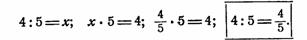 Мы нашли дробь, которая, будучи умноженной на 5, даст 4. Следовательно, деление произведено верно. Запишем: