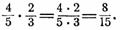 Числитель полученной дроби получился от перемножения числителей данных дробей, а знаменатель — от перемножения их знаменателей После рассмотрения ряда примеров выводится правило: чтобы умножить дробь на дробь, достаточно числитель первой дроби умножить на числитель второй и знаменатель на знаменатель и первое произведение сделать числителем, а второе знаменателем произведения.