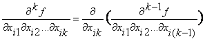 Определение: смешанной производной k-го порядка называется выражение вида: