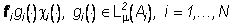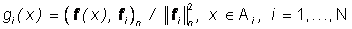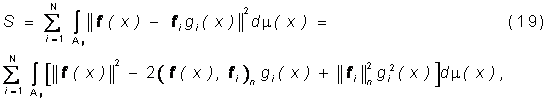 Теорема 3. Пусть A1, .,AN -заданное измеримое разбиение X, причем[9] m(Ai)>0, i=1, .,N. Решением задачи (18) наилучшего приближения изображения ![]()