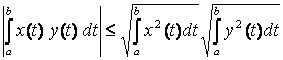 справедливо для любых вещественных чисел ai и bi. Простое доказательство этого неравенства основывается на следующем замечании: если квадратный трехчлен Ax2+2Bx+C с вещественными коэффициентами неотрицателен при всех вещественных x, то его дискриминант