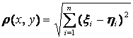 Def. n–мерное точечное пространство, в котором расстояние между точками определено по данной формуле