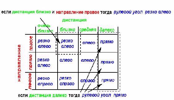 Если ДИСТАНЦИЯ БЛИЗКО и НАПРАВЛЕНИЕ ПРАВОЕ, тогда РУЛЕВОЙ УГОЛ РЕЗКО ВЛЕВО