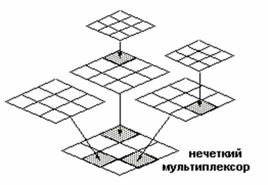 Кроме того, выходы нечетких узлов можно объединять с помощью мультиплексора - таким образом достигается более гладкий переход между множеством получающихся после обработки базы правил рекомендаций(рис.2.5.).