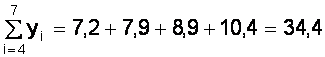 Пример.Используя данные рис. 10 определим коэффициенты а, b методом средней. Для этого семь измерений разделим на две группы m = 3 первых значений, n - m = 4 последующих