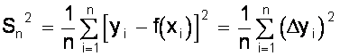 Предположим, что искомая зависимость y = ¦(х) существует. Тогда параметры этой линии необходимо выбрать таким образом, чтобы точки yi располагались по обе стороны кривой y = ¦(х) как можно ближе к последней. Предположим, что разброс точек yi относительно y = ¦(х) подчиняется закону нормального распределения. Тогда мерой разброса является дисперсия s2 или ее приближенное выражение - средний квадрат отклонений.