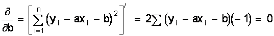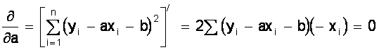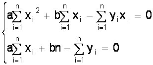 приравниваем к нулю производные этой суммы по параметрам а, b: