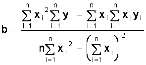 Вычисляя из n опытов необходимые суммы и производя указанные действия, получаем величину коэффициентов а, b.
