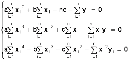 Дифференцируя это соотношение по а, b, с получаем систему нормальных уравнений: