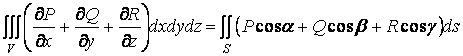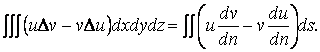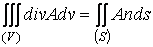 где слева стоит интеграл по объему, а справа интеграл по граничной поверхности, причем