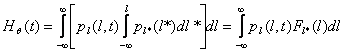 . При известных законах распределения p1(l,t) и pl*(l*), определяемым по формулам (12) и (14), эта вероятность находится как
