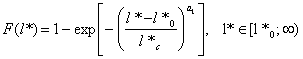 Для численного примера аппроксимируем функцию распределения длин дефектов F(l) и критических дефектов асимптотическими распределениями Вейбулла с параметрами l0, l*0, lc, l*c, a, a1: