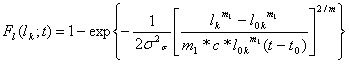 Найдем распределение длин дефектов Fl(lk;t) по формуле (12), которая примет вид: