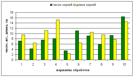 | Вариант опыта | Укореняемость, % | Число корней, шт | Длина корней, см |