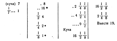 значками, Ахмес убедился, что первоначальное предположение для кучи (7) надо помножить на