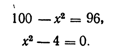 Диофант рассуждает следующим образом: из условия задачи вытекает, что искомые числа не равны, так как если бы они были равны, то их произведение равнялось бы не 96, а 100. Таким об­разом, одно из них будет больше половины их суммы, т. е. 10 + х, другое же меньше, т. е. 10 — х. Разность между ними 2х. Отсюда уравнение