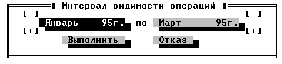 Интервал видимости операций задается в месяцах. Окно установки интервала представлено в виде меню (см. рис.10). Для перехода по позициям меню используются клавиши управления курсором.