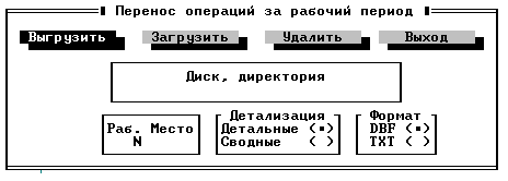 4) установить в какой файл будут выгружаться (загружаться) проводки: BMPTRANS.DBF - база данных, BMPTRANS.TXT - текстовый файл;