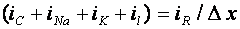 -значение мембранного потенциала в этой точке. Используется закон Ома, согласно которому ток через сечение пропорционален градиенту напряжения (в одномерном случае -производной). Ток через сечение