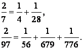 , для которой существовал специальный символ. Сведение к суммам основных дробей производилось с помощью таблиц, которые давали разложение дробей вида