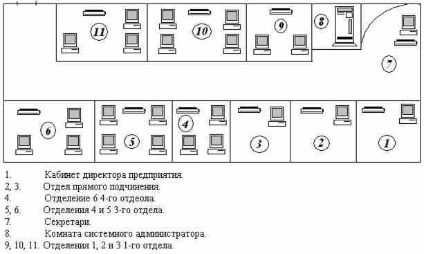 Сервер расположен в комнате сетевого администратора, так как только это помещение удовлетворяет требованиям, то есть уровень шума в помещении минимален, помещение изолированно от других, следовательно, доступ к серверу будет ограничен.