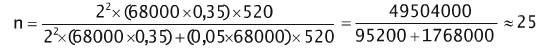 N - количество магазинов (520), торгующих морепродуктами; z - нормированное отклонение (2); E - ошибка выборки (5%); s - среднеквадратичное отклонение по признаку "ежемесячный размер товарооборота по морепродуктам". Если средний размер товарооборота по морепродуктам в месяц на один магазин оценить как 68 тысяч тенге, то предположим, что среднеквадратическое отклонение составит 35% от этой средней величины, учитывая, что есть крупные, средние и мелкие магазины или ± 24 000. Е = ± 5% от средней величины товарооборота. Отсюда, выборка составит: