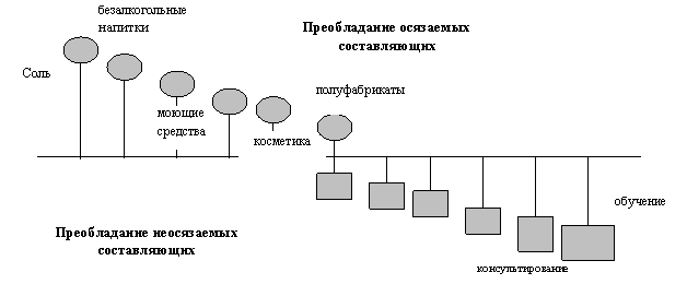 Рис. 1.1 Континуум “товар-услуга” с различной степенью осязаемости