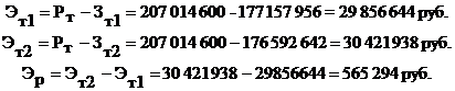 Где Эт - реальный экономический эффект от внедрения проектных мероприятий за расчетный период, руб.; Эт1 - экономический эффект, полученный за расчетный период без внедрения проектных мероприятий, руб.; Эт2 - экономический эффект, полученный за расчетный период после внедрения проектных мероприятий, руб.[2]