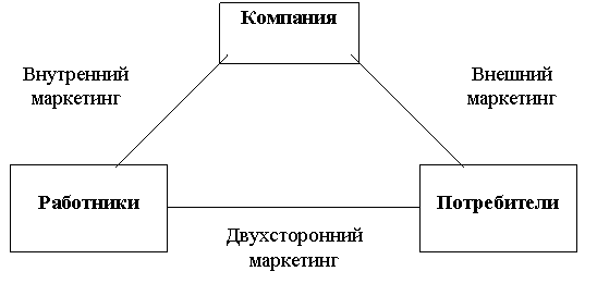 Рис. 1.2. Три типа маркетинга в отраслях сферы услуг