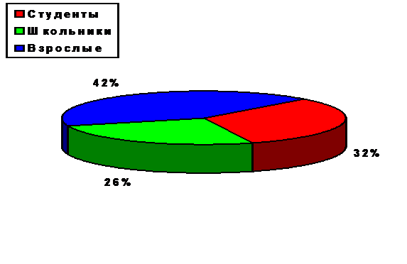 Ниже приведена классификация респондентов по другим признакам (Рисунок 2): школьники, студенты, взрослые люди.