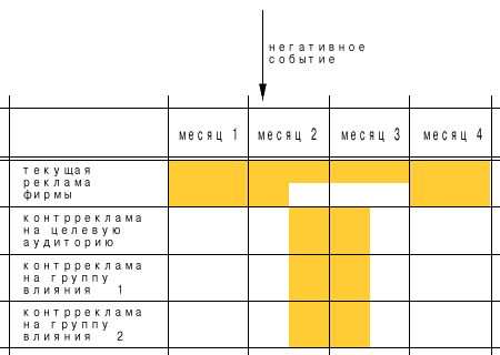 Таким образом, в случае контррекламы бюджет public relations минимум в 3-4 раза превысит бюджет стандартной рекламной кампании фирмы.