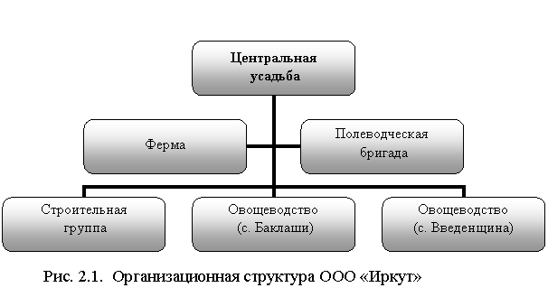 Целью создания и деятельности общества является удовлетворение общественных потребностей и получение прибыли. Основные виды деятельности общества: производство, переработка и реализация сельскохозяйственной продукции; заготовка, переработка и реализация древесины. Организационная структура ООО «Иркут» представлена на рис. 2.1.