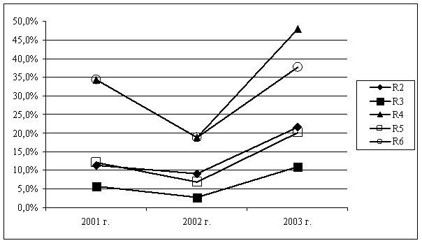 Мероприятия, проводимые в 2000-2003 г.г., потребовали значительных затрат, что привело к снижению прибыли и рентабельности. Эффект этих мероприятий сказался на результатах работы в 2003 г. Все показатели рентабельности увеличились не менее, чем в 2 раза, кроме операционного коэффициента, так как операционные затраты росли более быстрыми темпами, чем реализация. Однако при обеспечении роста прибыли рост операционных затрат оправдан.