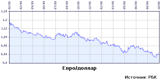 На тот момент это считалось вполне закономерным. Объединение экономик одиннадцати стран, некоторые из которых не соответствовали даже Маастрихтским критериям, – дело непростое. Эти требования должны были служить непременным условием вхождения в новый европейский союз. Ирландия же и Италия превысили максимально допустимую норму соотношения между государственной задолженностью и ВВП, а ирландская и португальская экономики не соответствовали стандартам допустимых темпов развития инфляции. Кроме того, к новой валюте следовало привыкнуть, что тоже требовало определенного времени. Однако того, что на самом деле последовало за первыми неделями снижения, не ожидал, похоже, никто. Уже после февраля-марта стало ясно, что падение евро приобрело характер долгосрочной, но стабильной тенденции. Начало НАТОвских бомбардировок и война в Югославии придали новый импульс начавшемуся движению. С одной стороны, экономики стран-участниц еврозоны начали испытывать дополнительный прессинг, с другой – именно военные действия в Югославии способствовали дополнительному укреплению как американского доллара, так и американской экономики в целом. В результате евро опустился до уровня 1,0400 менее чем за полгода своего существования. Итогом стала отставка министра финансов Германии Оскара Лафонтена, которого обвинили в недостатках планирования. Но даже произошедшее практически сразу после отставки министра финансов снижение ставок ЕЦБ, которое, по идее, должно было стимулировать экономический рост, уже не смогло изменить ситуацию – евро продолжал падать. Падение происходило на фоне многочисленных комментариев со стороны официальных лиц – начиная от высших лиц государств, в первую очередь той же самой Германии, и заканчивая выступлениями видных экономистов, прогнозировавших различные сценарии развития событий. С приближением лета комментарии приобрели характер заклинаний: все в один голос утверждали о недооцененности евро по отношению к доллару и о скором росте новой европейской валюты. В итоге сложилось впечатление, что по поводу евро не выступали только ленивые. Однако положение, когда развитие событий на валютном рынке комментировали именно политики, приводило к прямо противоположному эффекту – вместо того чтобы расти, евро продолжал падать. Ситуация доходила до смешного – после шести месяцев постоянного снижения (около13,5%), один из представителей Финляндии заявил, что "падение евро не столь драматично, как если бы оно имело характер тренда (долгосрочной тенденции)". Сие заявление было с юмором оценено всеми валютными операторами, а евро практически сразу опустилось еще пунктов на 200. В результате представитель Европейского Центрального банка рекомендовал всем политическим и общественным деятелям воздержаться от комментариев по поводу евро, "поскольку любые высказывание приводят лишь к ухудшению ситуации". Жаль, что не все последовали этому совету.