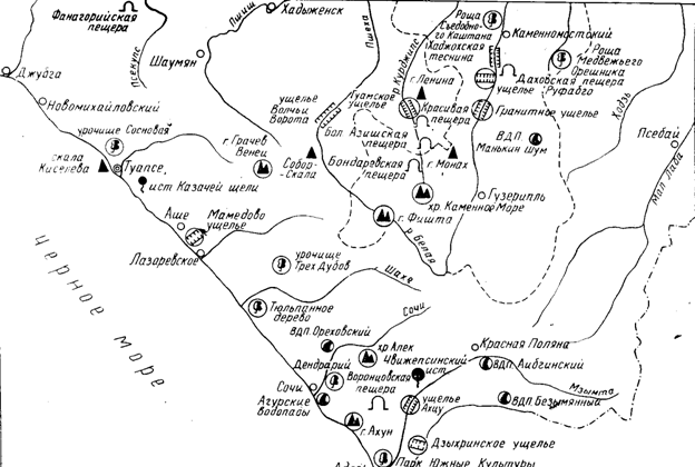 ПРИЛОЖЕНИЕ 1. КАРТА ПРИРОДНЫХ ПАМЯТНИКОВ КУБАНИ