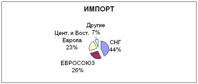 По показателям импорта ситуация во многом схожая, но при этом цифры заметно отличаются. Удельный вес стран СНГ в импорте значительно меньше - 43,4% от общего объема, хотя они и продолжают доминировать в поставках товаров в Молдову. Напомним, что в 1995 году доля стран СНГ в импорте составляла также 67,7%. Но за эти годы практически удвоился импорт из стран Евросоюза - с 13,7% в 1995 году до 26,2% в 1998. Возрос удельный вес в импорте и государств Центральной и Восточной Европы, достигнув в прошлом году уровня 23,3%.