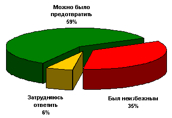 Респондентам в возрасте от 18 лет и старше были заданы следующие вопросы: 1) «Как Вы считаете, был ли распад СССР неизбежным или его можно было предотвратить?» Ответы на него распределились следующим образом: