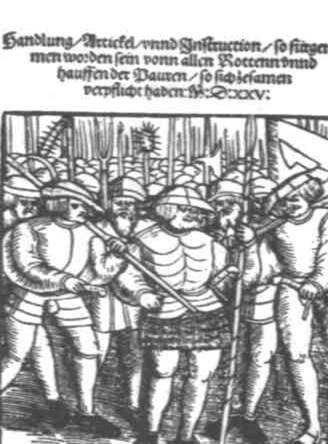 Так как до настоящее времени, — говорится в этом документе — на бедных простых людей городов и деревень . налагались большие тяготы со стороны духовных и светских господ и властей, которых те и мизинцем не трогали, то из этого следует, что подобного бремени и отягощения невозможно ни переносить, ни терпеть, если только простои бедный человек не хочет пустить совсем по миру с нищенским посохом себя самого, свое потомство и потомство потомства. Объединившемуся народу, говорится далее, необходимо «освободиться полностью». Мирное решение этой задачи допускалось бы только в том случае, если бы все объединились в целях переустройства жизни на основе принципов «общей пользы». В условиях же существования указанных тягот дело не обойдется без кровопролития.