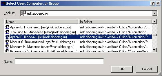 4. Для удаления пользователя или группы следует выделить их в списке Name (Имя) и щелкнуть на кнопке Remove (Удалить). В этом случае у пользователя или группы не останется разрешения на объект, если только пользователь или группа не являются участниками другой группы, которая остается в списке. Такие пользователи сохранят доступ к файлу или папке. (если следует запретить доступ, лучше не удалять пользователей из списка, а изменить разрешение на запрещение).
