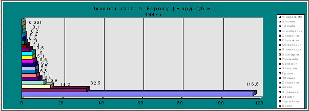 В 1997 г. РАО «Газпром» поставило природный газ 19 европейским странам в объёме 116,8 млрд.м3.