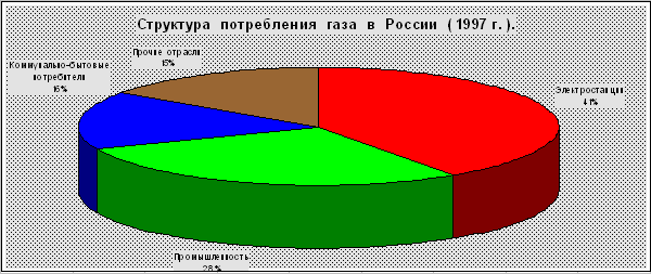 В 1997 г. народному хозяйству России поставлено 336 млрд.м3. газа, в том числе предприятиями РАО «Газпром» - 301,3 млрд.м3. газа.