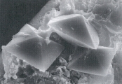 Рис. 3. Сканированная электронная микрофотография некоторых маленьких кристаллов, описанных в рис.2 (увеличение Х 1,800).