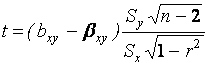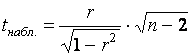 где t имеет распределение Стьюдента с n=n-2 степенями свободы.