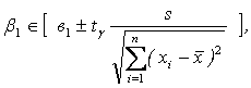 Интервальные оценки для коэффициента регрессии получают по формулам: