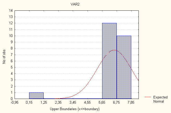 В третьей колонке показано количество лет, попавших в соответствующий интервал. В четвертой колонке процент годов, попавших в интервал. В пятой колонке проценты, подсчитанные с учетом отсутствующих значений. В последнем столбце показаны накопленные частости с учетом пропусков. На рис. 2 представлена гистограмма для показателя – распределение частот уровня рождаемости.