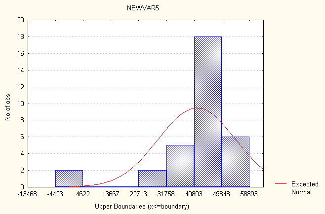 В третьей колонке показано количество лет, попавших в соответствующий интервал. В четвертой колонке процент годов, попавших в интервал. В пятой колонке проценты, подсчитанные с учетом отсутствующих значений. В последнем столбце показаны накопленные частости с учетом пропусков. На рис. 13 представлена гистограмма для показателя – распределение частот численности населения.