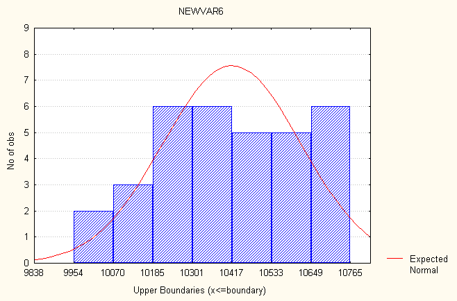 В третьей колонке показано количество лет, попавших в соответствующий интервал. В четвертой колонке процент годов, попавших в интервал. В пятой колонке проценты, подсчитанные с учетом отсутствующих значений. В последнем столбце показаны накопленные частости с учетом пропусков. На рис. 12 представлена гистограмма для показателя – распределение частот ВВП.